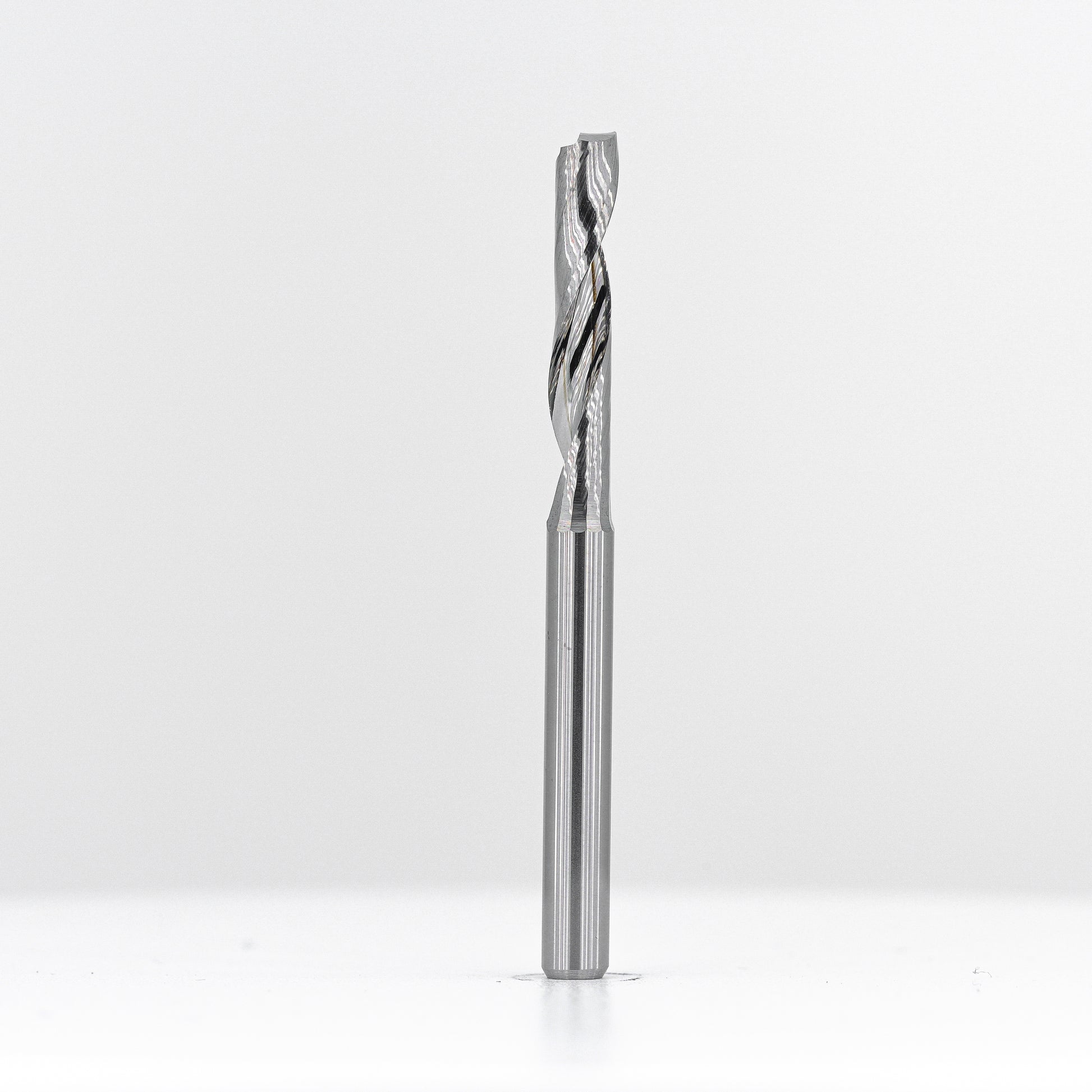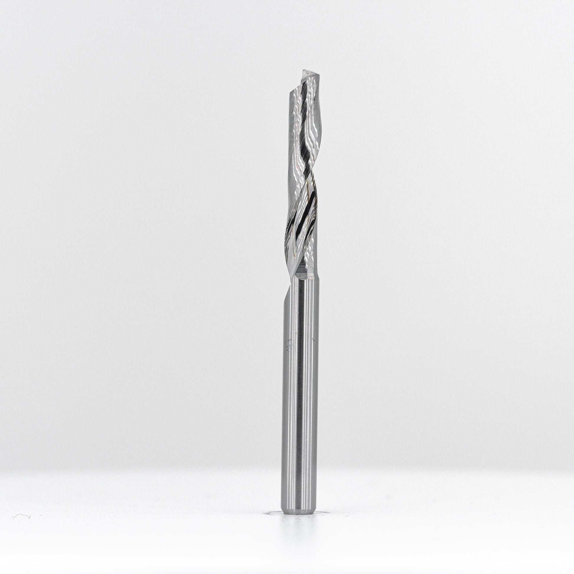 Purpose-built for non-ferrous metals like aluminium and copper, these single-flute up-spirals feature precision-optimised geometry for unmatched edge quality. The wide, mirror-polished flute maximises chip evacuation, while the high helix and ultra-sharp edge reduce heat buildup and minimise burring — delivering a finish superior to standard designs.